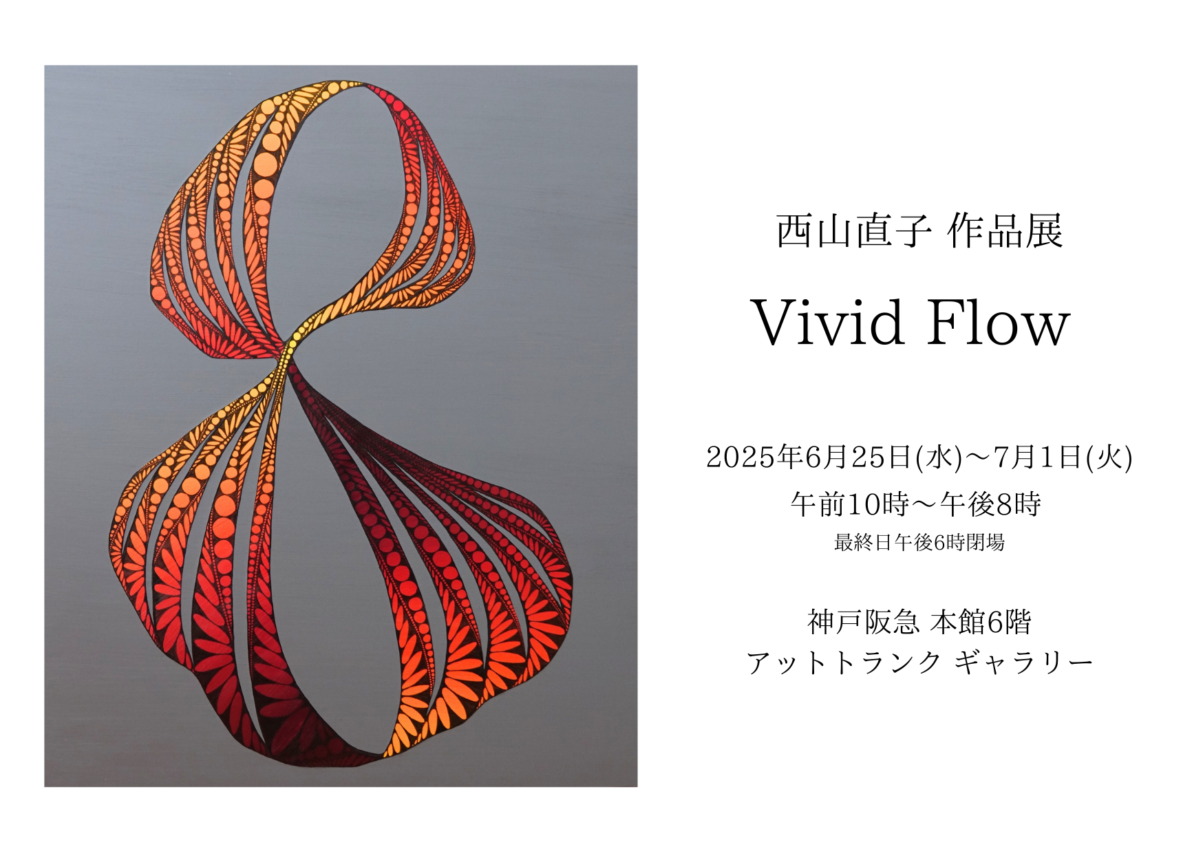 2025-07-28 Home › › 個展DM横向き 個展DM横向き 関連記事 【東京】公募展に入選・受賞しました 【大阪】個展を開催します SELECTED | Formless (Jersey City, USA) SELECTED | The 81st Genten Contemporary Art Exhibition (Tokyo, Japan) 【お知らせ】カタログに掲載していただきました SOLO | Vivid Flow (Kobe, Japan)